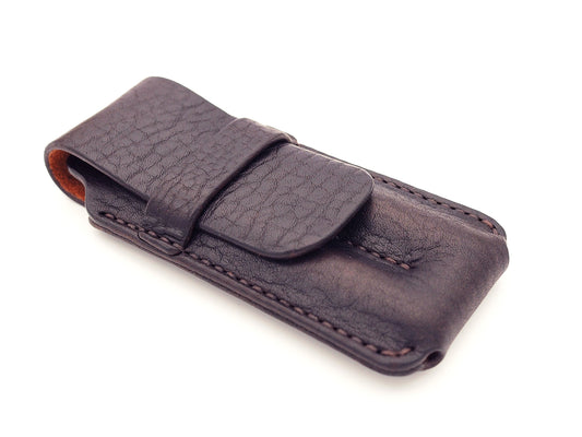 Stiftetui für 2 Schreibgeräte - dunkelbraun - gemillt