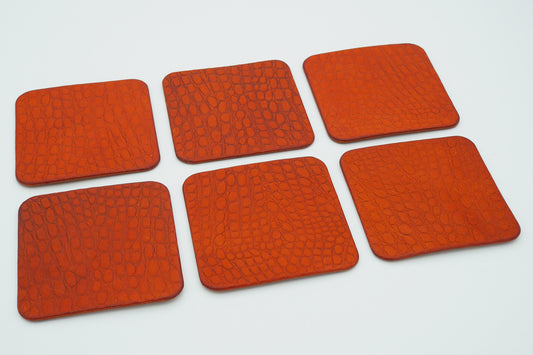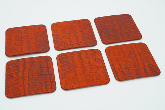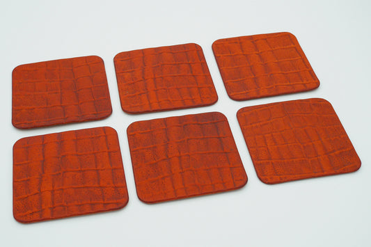 Untersetzer - cognac - Krokoprägung - 6 Stück